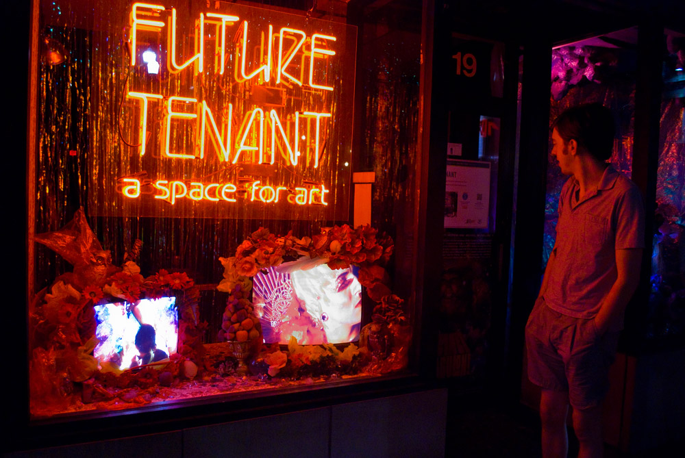 Planet Dragulon: Through the Bowels of the Glitter Caves was a multi-channel window installation in collaboration with Michael McParlane, that featured Veronica Bleaus, S.E. Smith, Michael McParlane, and Karl Sjogren.