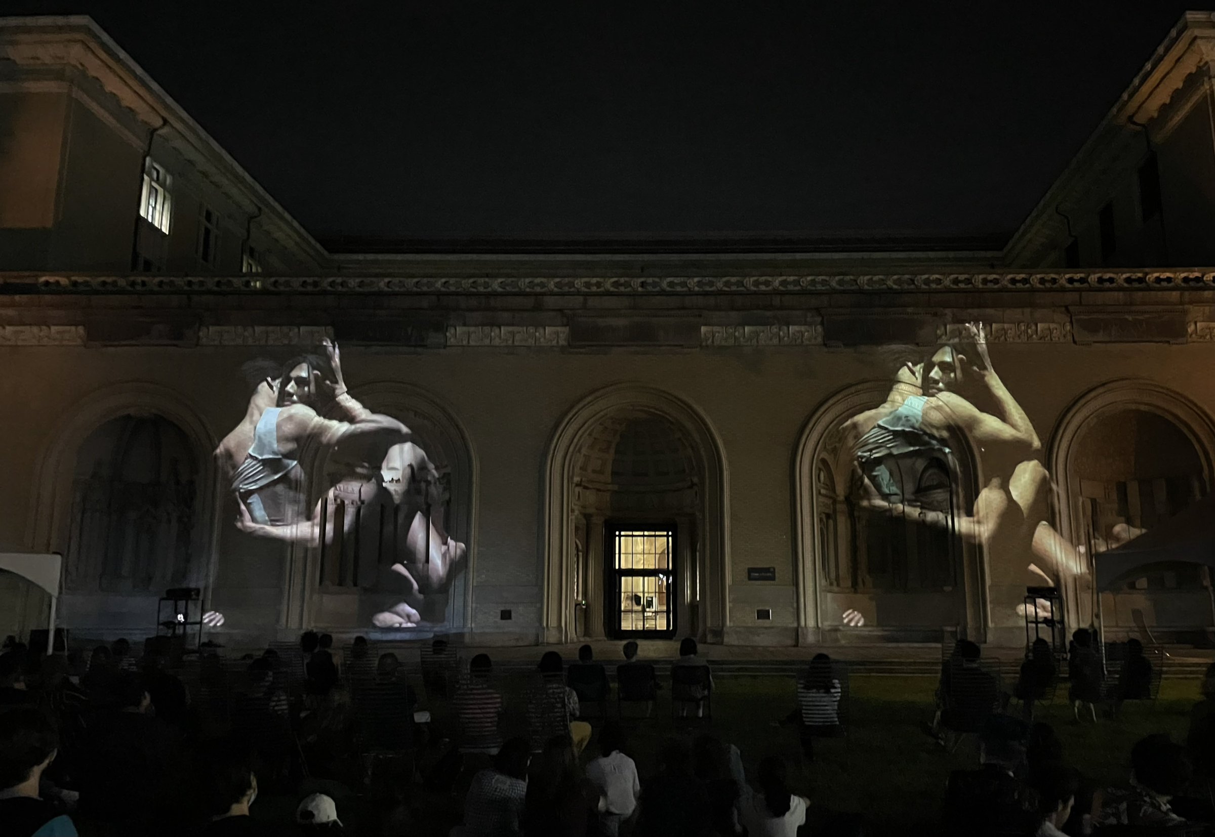 Scott Andrew organized a screening of The Dragon Sisters' visual album ‘Two Nights Out’ on the facade of the college of fine arts at Carnegie Mellon University in conjunction with TQ Live! This event was made possible by the Sylvia and David Steiner Speaker Series, the Studio for Creative Inquiry, CMU School of Art, The CMU Electronic Music, and The Opportunity Fund