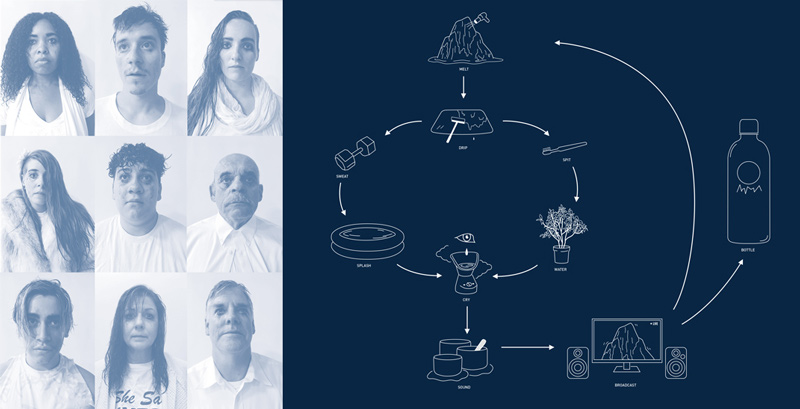The project consists of a one night live performance, multi-channel video and vending machine stocked with Avalanche water, all of which work together to create a mythology of the product’s “source.” Passing water between the city and the mountain in an endless feedback loop, IfNf's filtration process equates the mountain spring with the trickle of water across a dirty windshield, the tears of two middle-aged men, the gargle and spit from a teenager’s mouth—juxtaposing trivial everyday gestures with the looming, dark future of a changing climate.